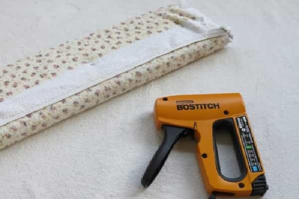 Una vez ubicado el paño de cocina, fíjalo con chinches, clavos o con corchetes para madera. La idea es que quede bien apretado para que no se salgan con facilidad y dañe a nuestra mascota.