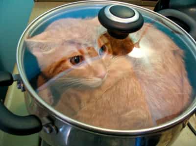 3. A estos gatitos les dio hambre y no encontraron nada mejor que hacer huelga dentro de una olla