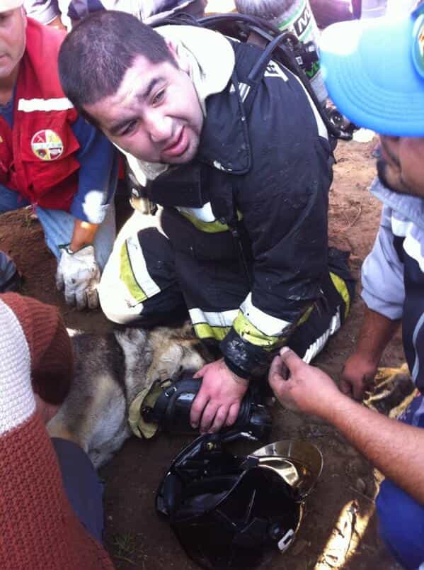 "Uno de los perros estaba casi muerto y por eso le dimos respiración; yo volvería a hacer lo mismo, porque para eso estamos preparados" aseguró Cristán Espinoza, de la Brigada de Rescate y Ayuda Comunitaria, quien también participó en el rescate.