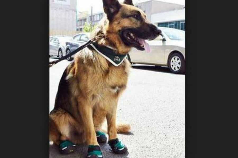 Perros policiales estrenaron zapatillas para salir a patrullar a las calles
