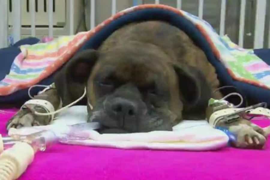 Perrita intentó salvar a su amo en un incendio y ahora lucha por su vida