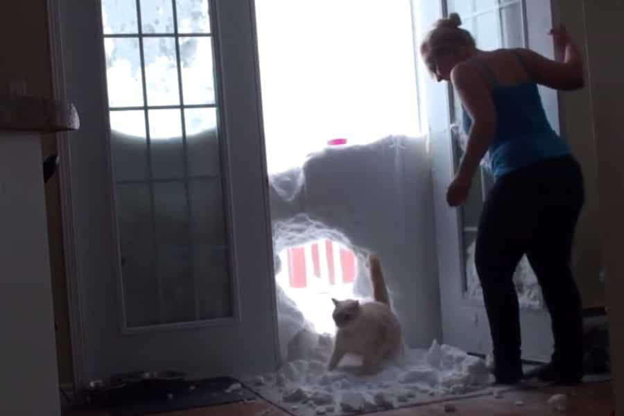 A continuación verás el video de un gato que es capaz de atravesar una muralla de nieve, la que bloquea la salida de una casa, de algún lugar donde en esta época están en pleno invierno.