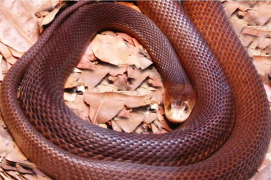 2. Serpiente Inland Taipan. Esta australiana serpiente es, nada más ni nada menos, que la más venenosa de todo el mundo. Su veneno tiene la capacidad de matar a 100 personas adultas, y es hasta 400 veces más tóxico que el de una cascabel y 50 veces más peligroso que el de una cobra.