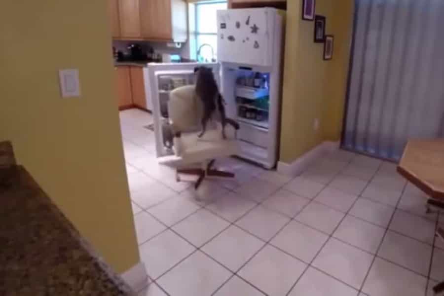 A continuación verás un video donde aparece un perro que sin ningún problema abre el refrigerador para sacar lo que más le gusta comer, incluso acerca una silla para llegar al alimento