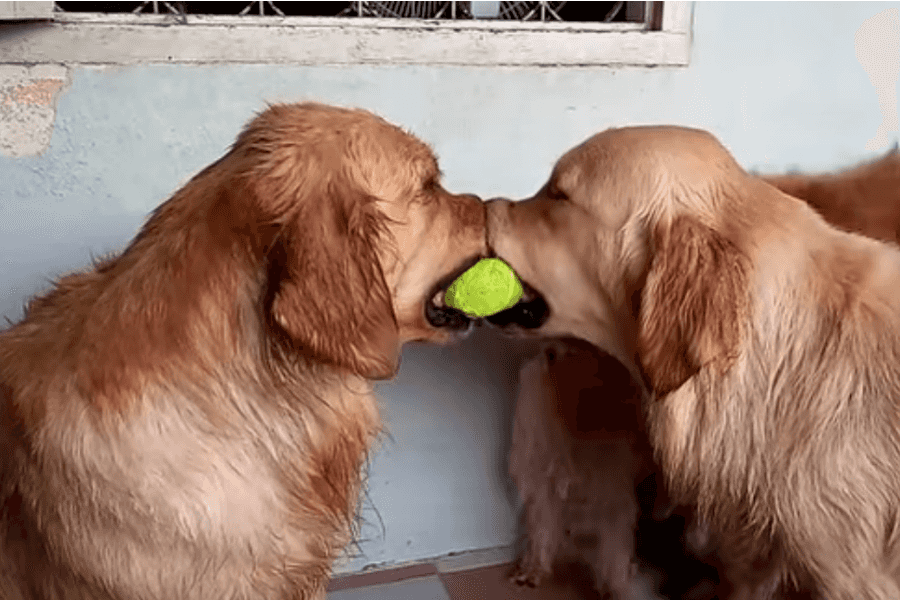 Estos golden retirever disputaban una pelota de tenis, con la jugaban junto a su dueño, pero esto duró poco, porque alguien llegó a solucionar el problema. A continuación podrás ver el video que ahora es un éxito en youtube.