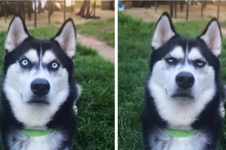 Anuko es un perro siberiano que se ha hecho famoso en internet como el "Perro Gruñón", esto se debe a que su madre Jasmine Milton, una estudiante de psicología de 18 años, le sacara una foto en el momento preciso.