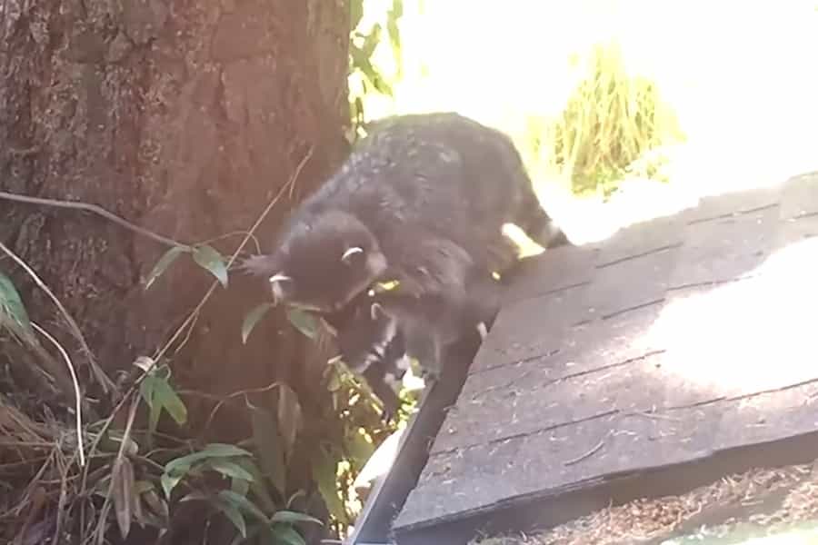 A continuación podrás ver un video, que protagoniza una madre mapache con su pequeño hijo, a quien le enseña a trepar un árbol, que en un comienzo lo intimidó, pero luego de algunas caídas, lo logró.