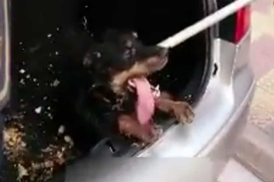 La perrita fue descubierta gracias a que su dueño no tenia ticket para estacionar, entonces cuando le iban a pasar una multa, el policía escucho ruidos en el maletero y ya que no tenían el contacto del dueño, debieron abrirlo con un gancho.