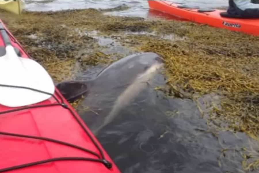 Un grupo de kayakistas que navegaba por la costa de la isla escocesa de Barra, se encontraron una inesperada sorpresa que les sacó toda su bondad, al ver a un delfín atrapado a quien decidieron ayudar.