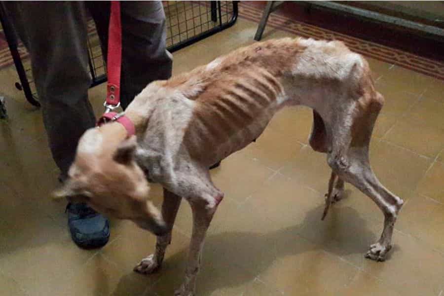 "Huesitos" era un perro que había sufrido mucho por el abandono, el maltrato y la desnutrición, quien fue rescatado por los voluntarios de la organización animalista de Córdoba, Argentina, Almitas Fuertes.