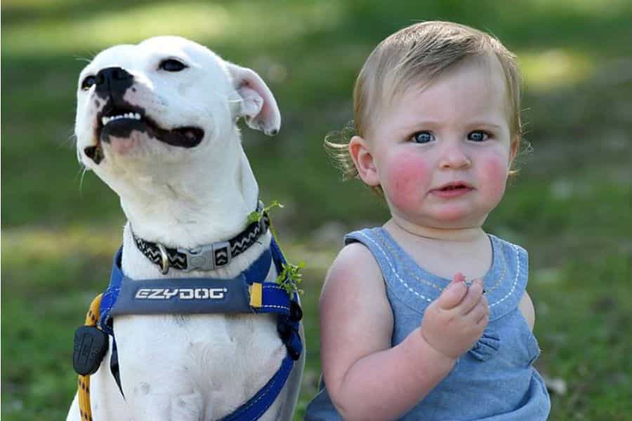 Ella es Peggie, una niña que nació sin su brazo producto del Síndrome de Bandas Amnióticas y su mejor amigo tampoco tiene una extremidad. Snowy es un perro de un año de edad al igual que su compañera de juegos.