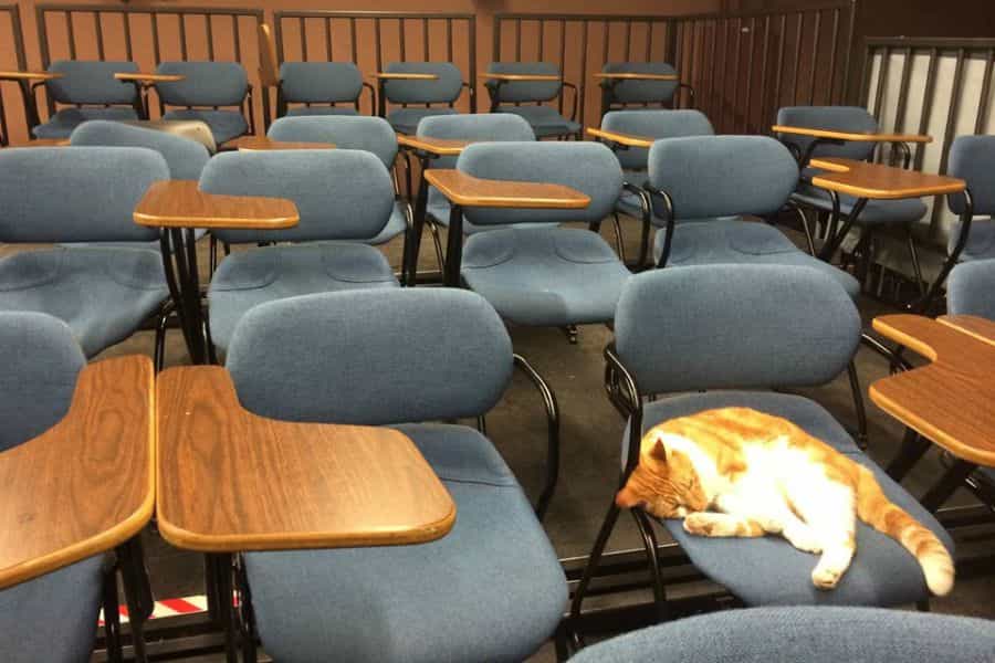 A continuación podrás ver algunas imágenes del felino que pasa gran parte de su tiempo como si fuera un alumno más de la Leland High School.