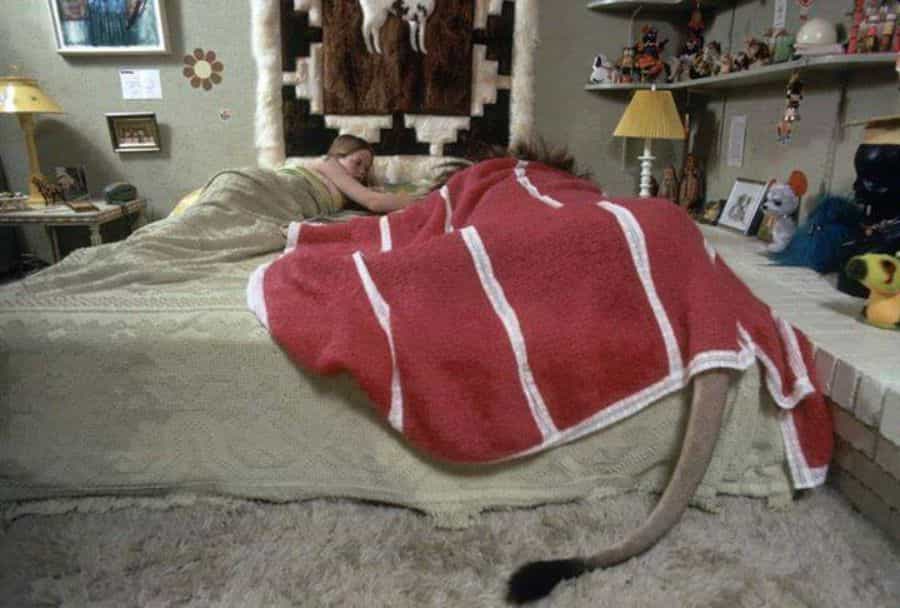 A continuación podrás ver algunas imágenes de una familia de Estados Unidos que vive con un león dentro de la casa, el que comparte la cama con sus dueños, a pesar del gran tamaño que tiene este salvaje animal.