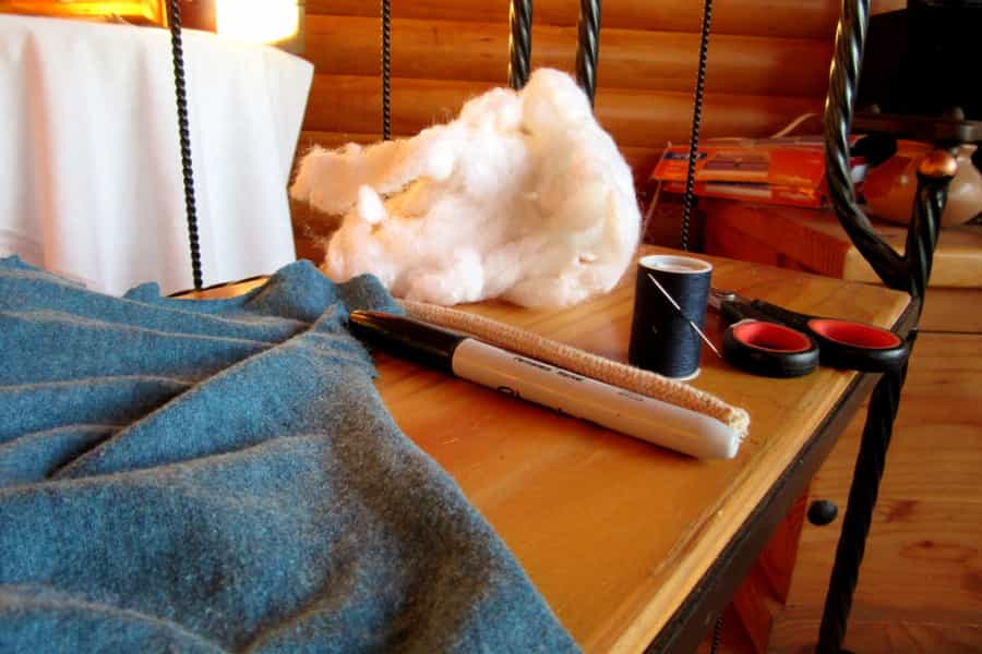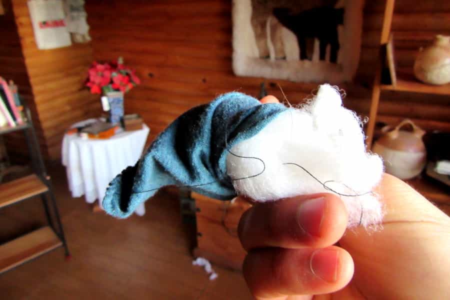 Puedes cortar unas orejitas con lo que te sobró de tela y cocerlas a su cabeza, además de dibujarle ojos y bigotes con el marcador, así parecerá más real.