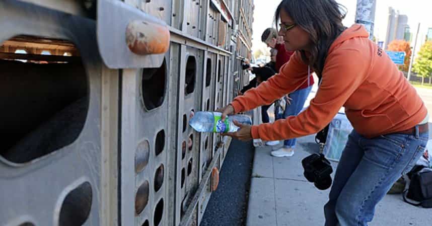Para Anita Kranjc, ver un montón de cerditos camino al matadero, bajo un calor insoportable, fue motivo suficiente para ofrecerles agua en un gesto de compasión que seguro sería el primero y el último que tendrían en su corta vida. Pero, lo que sin duda fue un gesto humanitario, hoy es motivo de debate, pues Kranjc podría enfrentar hasta 10 años de cárcel o una multa de 2,500 libras esterlinas (unos 2,6 millones de pesos chilenos)