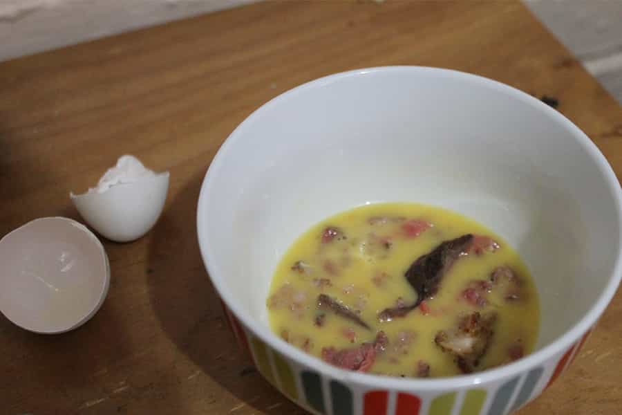 En primer lugar debemos batir el huevo hasta crear una mezcla homogénea. A continuación tendrás que agregar la carne picada y seguir revolviendo.