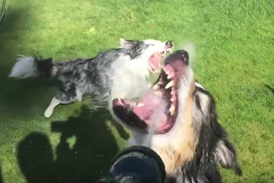 Estos perrines fueron grabados en cámara lenta tomando agua de la manguera ¡Genial!
