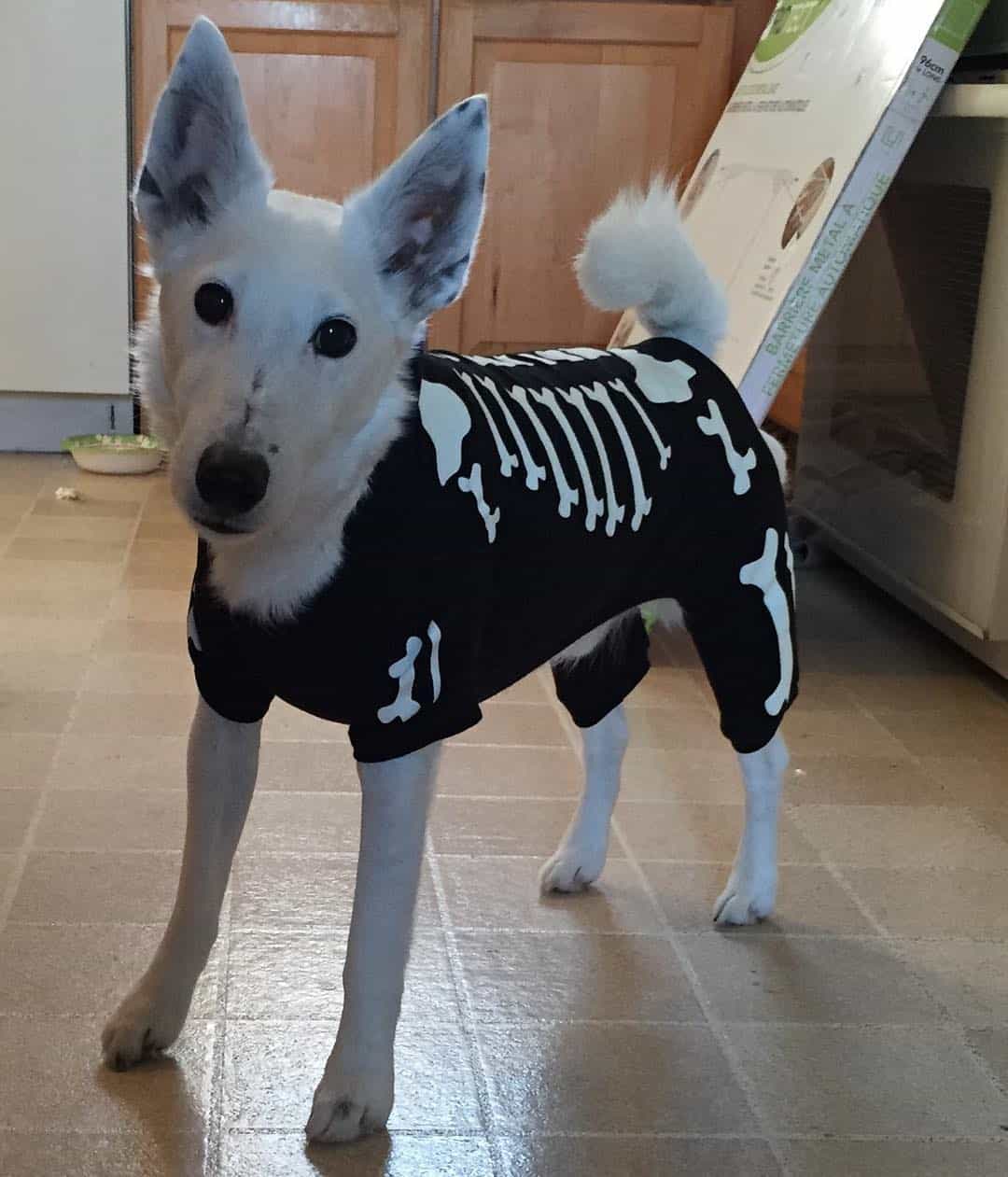 Ruby es una cachorrita fox terrier de pelo liso que disfruta disfrazarse y jugar en el pasto.