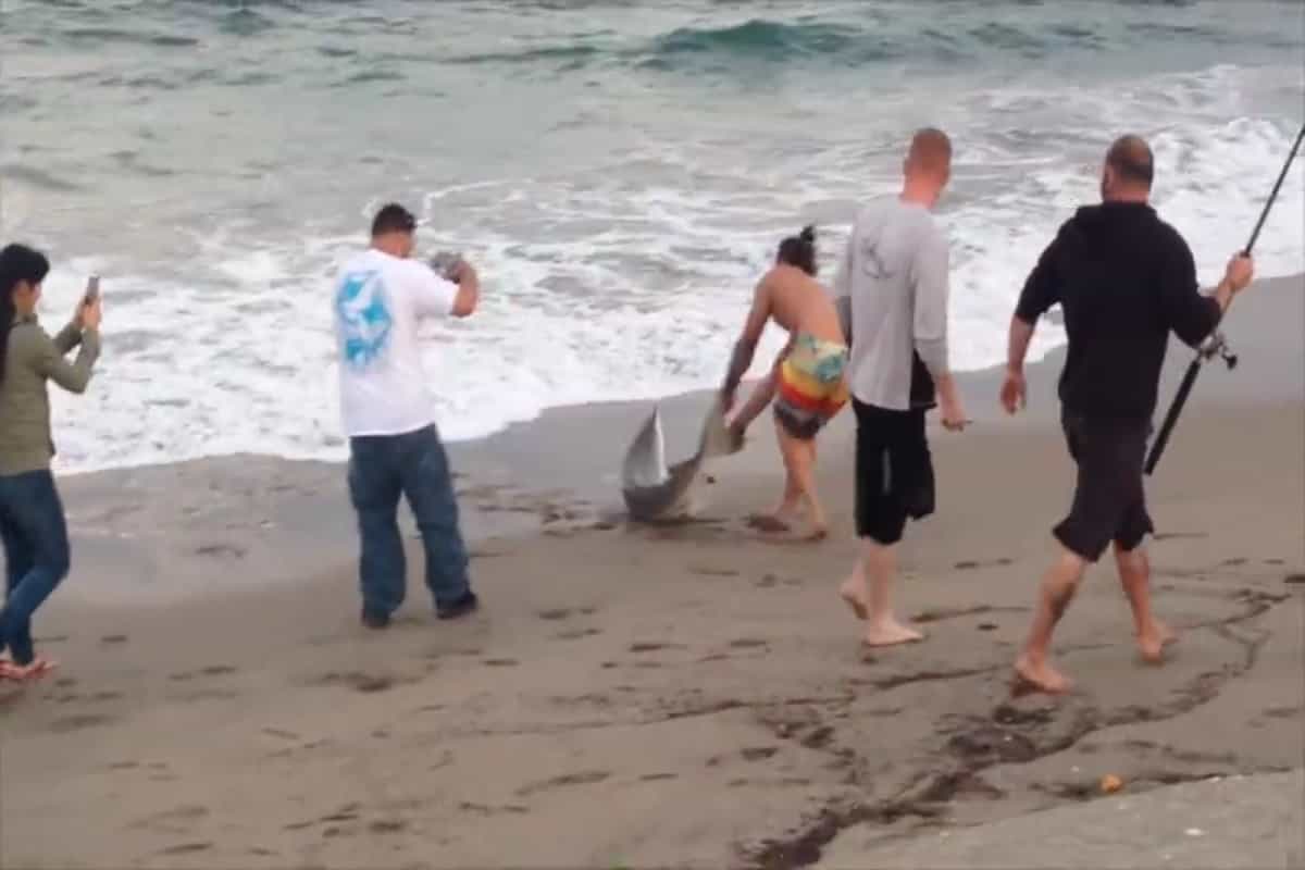 Lapolémicaporcapturaranimalesyfotografiarseconelloscontinúa,luegodequeelpasadosábadounveraneanteenlaplayadePalmBeach,California,sacaraaunpequeñotiburón.Estospequeñostiburonesalgunasvecesseacercanalaplayaproductodeunadesorientación.Eslo que sucedió en este caso,cuandoelhombre,al ver el escualo prácticamente varado, lo toma de la cola y trata de inmovilizarlo, para luegosubirseencimadeélycomenzaraserfotografiadoporotrogrupodepersonas.Finalmente,despuésdehabertomadolasfotos,eltiburónesdevueltoalagua.Lapersonaquegrabóelvídeodijoqueletomóvariosminutosaltiburónreponerseypodernadar.