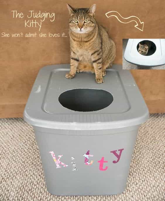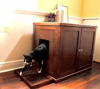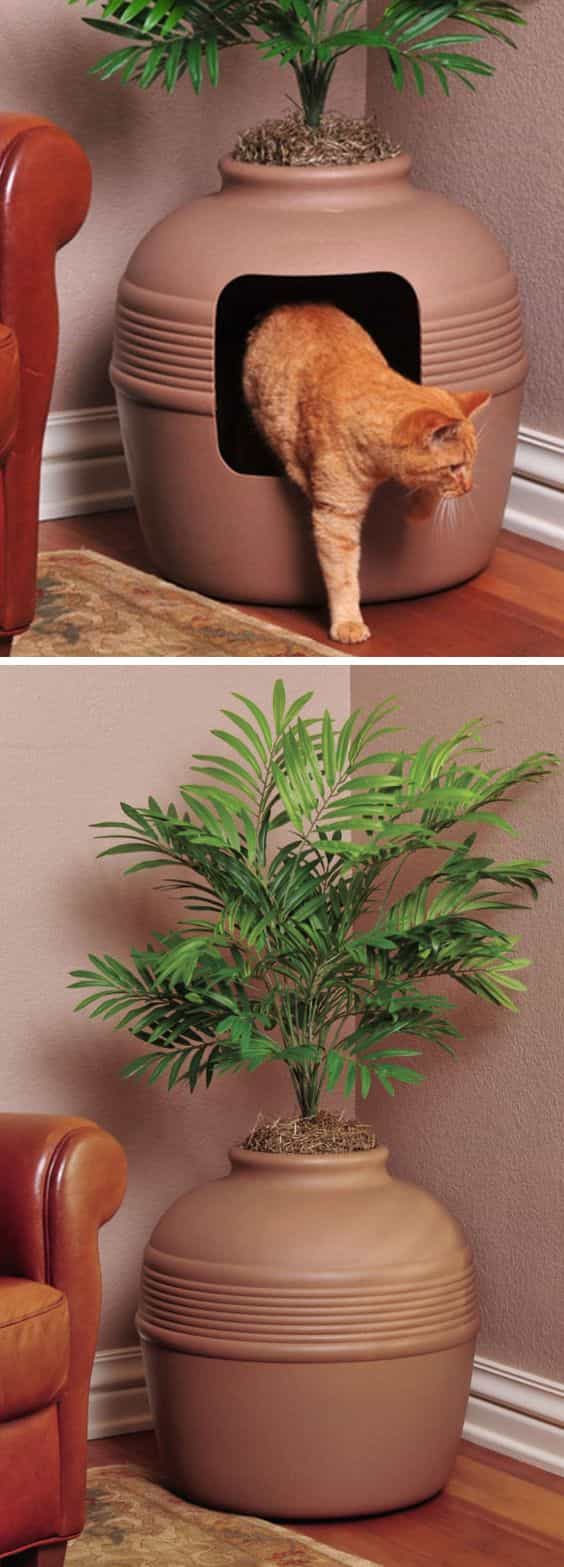 Esta idea sirve para ahorrar espacio en tu hogar y para disimular el tosco diseño de los areneros.