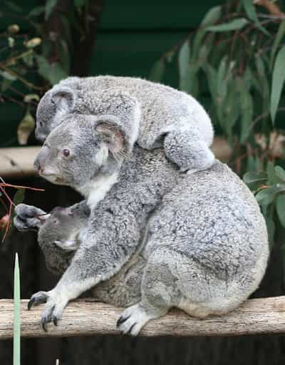 Las hembras cargan a sus crías en su bolsa marsupial desde que nacen hasta que cumplen 6 meses, y luego las transportan en su espalda hasta que cumplen un año de edad.