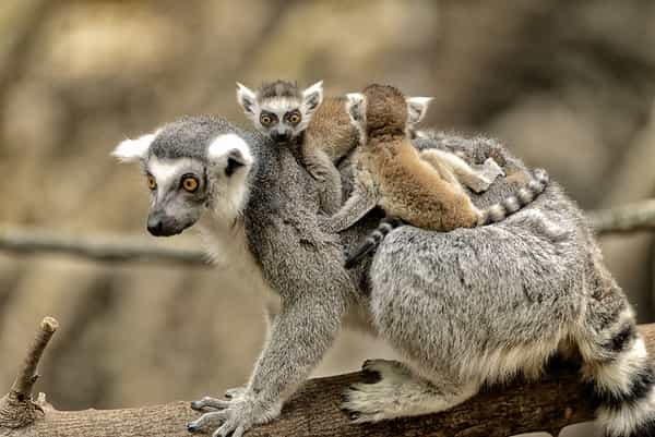 Los lémures transportan a sus crías en sus bocas, hasta que estas tienen la fuerza suficiente para poder afirmarse de la piel de su madre o padre.