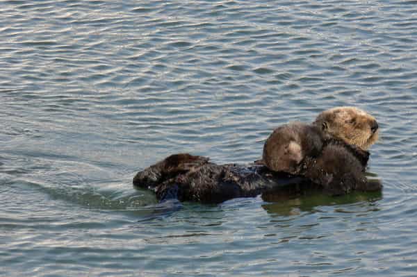 Las nutrias cargan a sus crías sobre su pecho o espalda hasta que cumplen un mes de vida aproximadamente, ya que deben enseñarles a nadar.