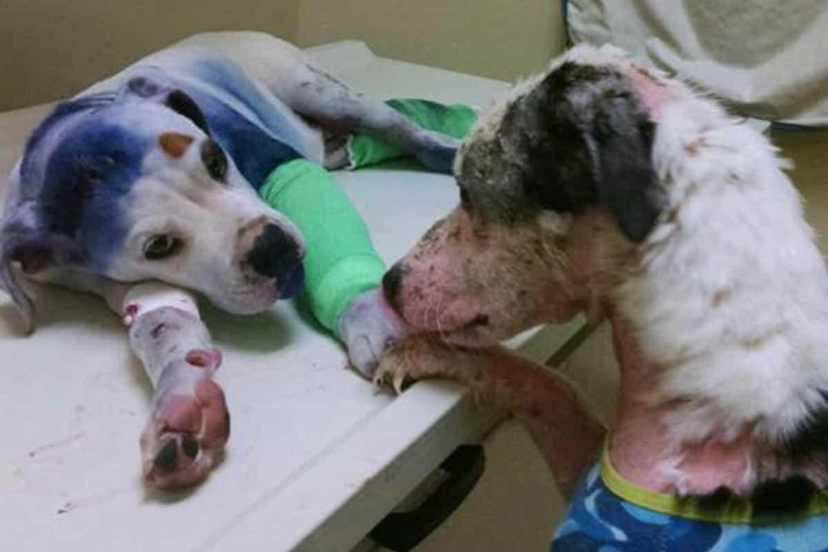 Después de una dura vida por la que pasaron estos perros maltratados por sus dueños, se conocieron y empatizaron inmediatamente y comenzaron una linda amistad llena de cariño y divertidos juegos.