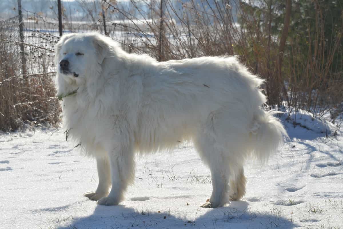Wikipedia nos explica que su color principal es blanco y puede tener varias sombras de gris (sin ninguna alusión cinematográfica, por favor) o algunos tonos marrones en la cara, orejas y cola. A medida que crece, su pelaje se hace más grueso. Es un perro de doble pelaje y otra de sus características es que posee doble espolón. Los adultos llegan a pesar entre 50 a 60 kilos y a medir 70 a 80 cm de altura.