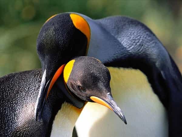 7. Pingüinos. Se cree que son monógamos por las dificultades de las condiciones climáticas donde habitan y de esta manera maximizan sus posibilidades de desarrollo y supervivencia. Ambos, tanto macho como hembra, comparten a partes iguales todo lo relativo a la crianza de los hijos y luchan tanto por ellos como por su pareja durante toda la vida. Es divertido a la par que extraño ver cómo estos animales buscan a su dúo, puesto que organizan todo un ritual de exhibiciones y juegos. Emiten extrañas voces y algunos hasta braman, llegando incluso a correr con violencia por encontrar a su hembra, mueven la cabeza y levantan sus alas para que ellas se den cuenta de donde están y les visualicen sin problema alguno. Varias especies sólo se aparean con la misma pareja año tras año. Pueden encontrar a su pareja de toda la vida incluso entre miles de pingüinos en el lugar habitual de apareamiento.