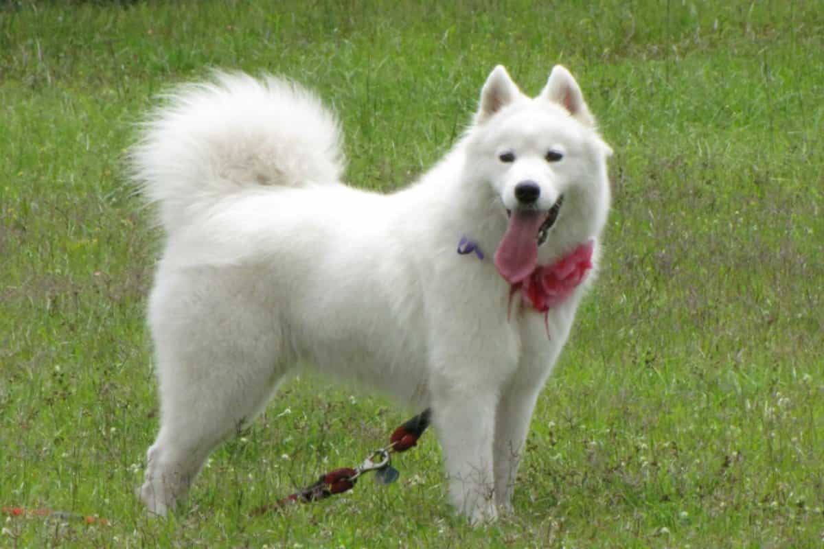 Con un peso de hasta 32 kg, el samoyedo es otra de las razas de perros que parecen lobos, lo cuales llevan ese nombre por el pueblo del mismo nombre en el norte de Rusia. Esta raza se crió para el pastoreo y tirar de trineos. Es un can poco recomendado como vigilante, ya que su temperamento lo vuelve en una mascota muy amigable. Su pelaje es una de las cosas que más llama la atención, por lo que requiere de cuidados especiales.